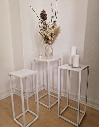 Benutze diese schönen Podeste für deine Torte, Dekoration, Vasen, als Eyecatcher neben eurem Willkommensschild, für euer Audio-Gästebuch oder andere Dinge. Ein garantiertes Highlight!